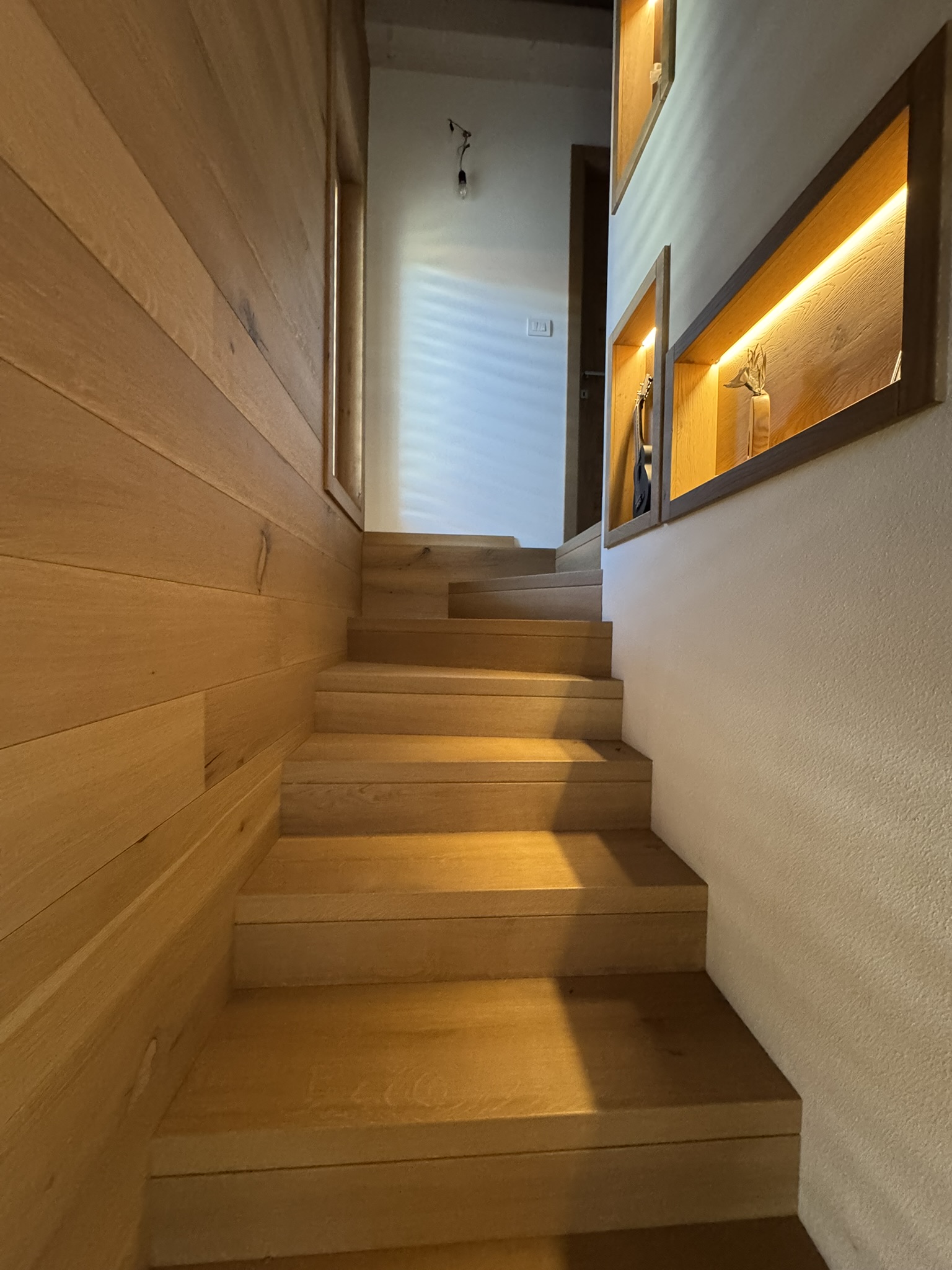 Una selezione di interventi recenti che illustra la versatilità delle nostre soluzioni su misura. Dalle scale autoportanti ai rivestimenti in legno coordinati, ogni progetto nasce per risolvere le specifiche esigenze strutturali dell’abitazione. Le immagini mostrano l’integrazione tra la precisione della produzione in falegnameria e la posa in opera finale, garantendo un risultato tecnico ed estetico in linea con l’architettura della casa.